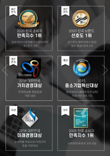 (2021 소비자 만족 지수 1위(6년 연속) / 한국 서비스 품질 우수기업 인정 / 기술혁신형 중소기업 인증 업체)
