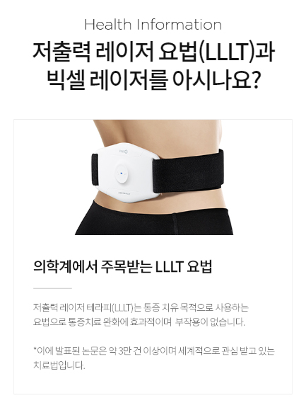 잠깐 시원한 마사지기와는 달리 근본적인 통증의 원인인 세포의 손상을 치유하는 저출력 레이저 요법으로 통증을 완화시켜줍니다.