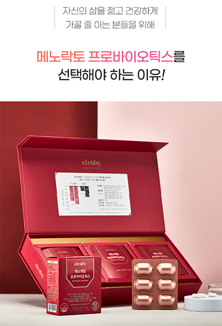 기능성 인정받은 갱년기 유산균yt1 엘루비 메노락토 프로바이오틱스 최대 구성 특별 할인 받고 콜라겐 추가 증정까지!!