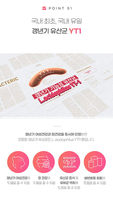① 국내 최초, 국내 유일 갱년기 유산균 yt1