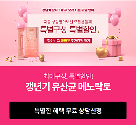 오직 나를 위한 행복 지금 박미선의 여성 갱년기 유산균yt1 메노락토 프로바이오틱스 상담 받아보신 모든 분들께 특별 구성, 특별 할인 혜택, 콜라겐 추가 증정까지 받아보실 수 있어요 ~♥