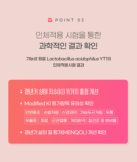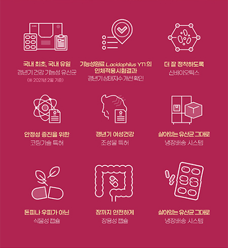 갱년기 여성건강과 장 건강을 동시에 인정받은 진정한 갱년기 유산균yt1