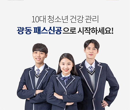 "광동 패스신공 총聰 기상 후 한포 섭취로 청소년의 하루 활력과 광동 패스신공 기氣 취침 30분 전 한포 섭취로 스트레스로 인한 긴장 완화와 편안한 하루의 마무리를 돕는 10대 청소년을 위한 하루 건강 관리 포뮬라 아침 · 저녁 1포씩 섭취로 하루 종일 좋은 컨디션 유지 가능"