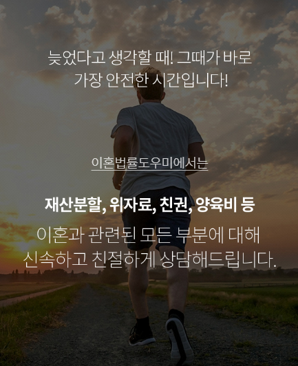 이혼 법률도우미에서는 이혼 시 재산분할, 위자료, 친권, 양육비 등 이혼과 관련된 모든 부분에 대해 포트폴리오를 무료로 구성해드리며, 행복하고 밝은 미래를 설계할 수 있도록 최선을 다해 도와드리고 있습니다.